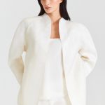 Куртка-жакет кремового цвета из жаккардового шелка.