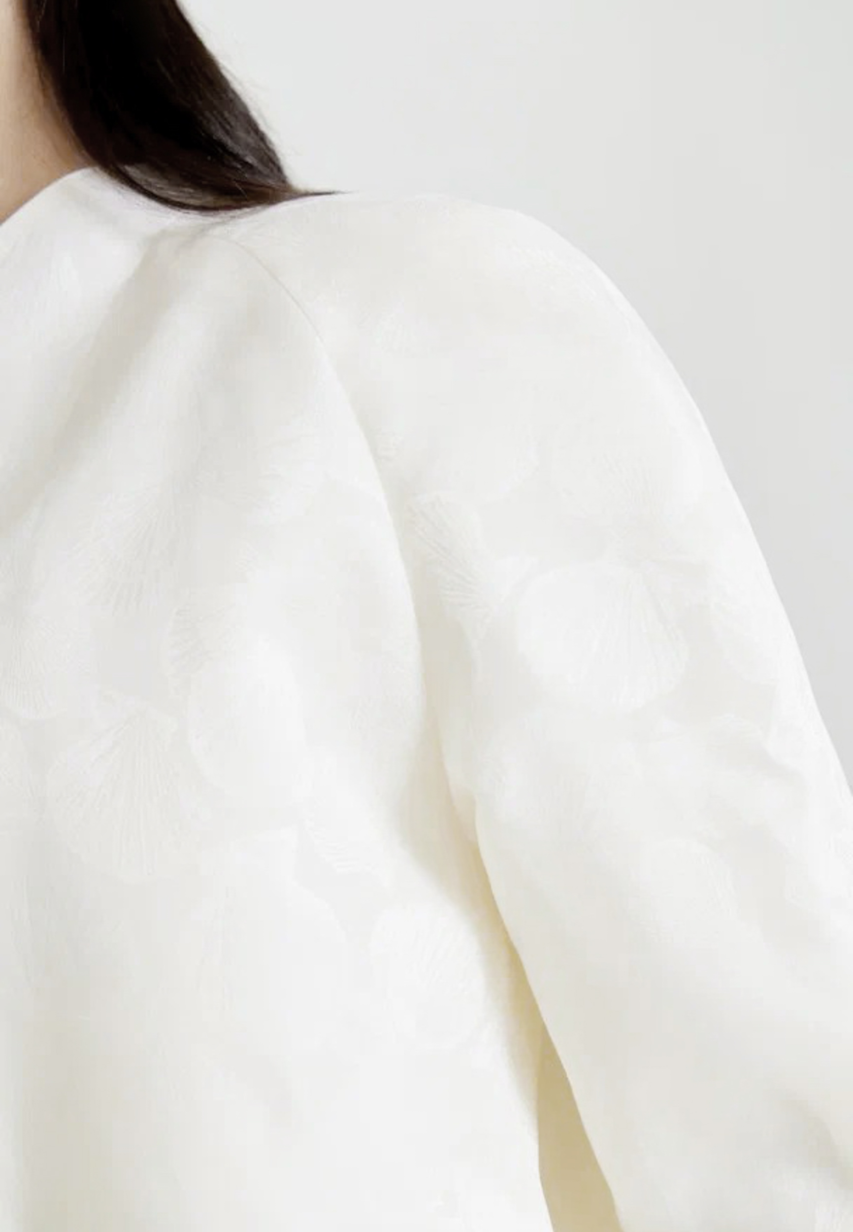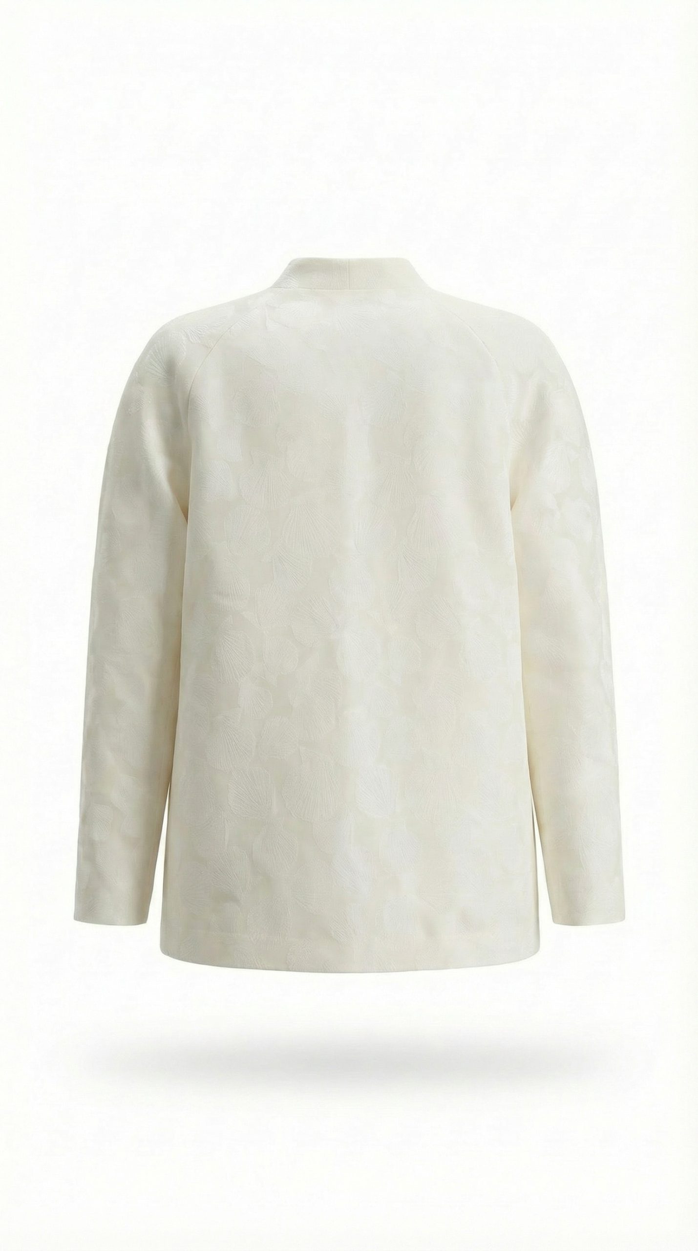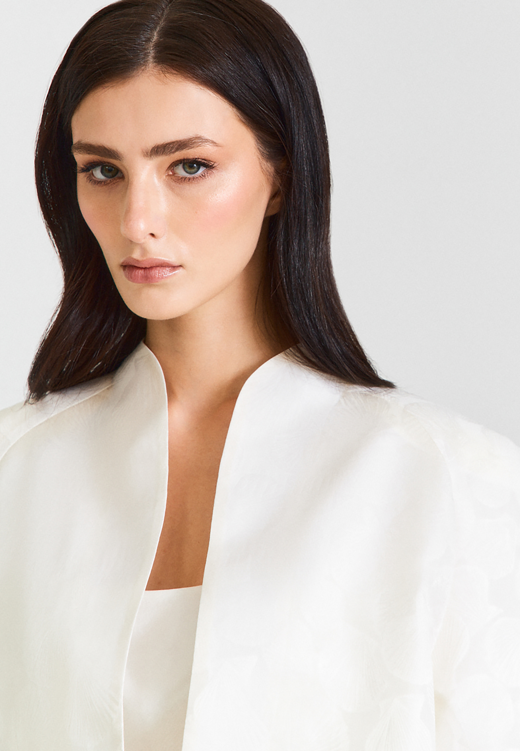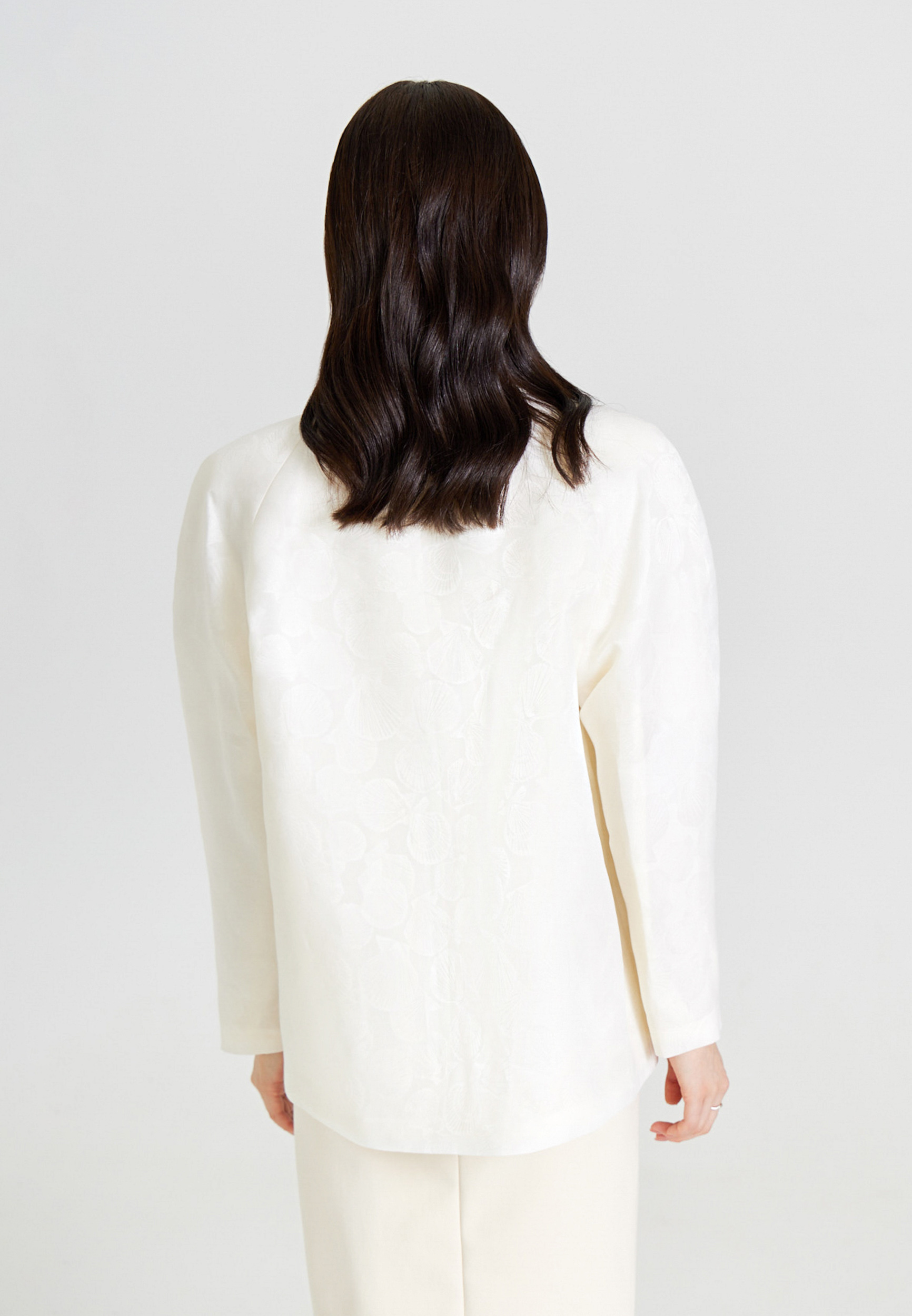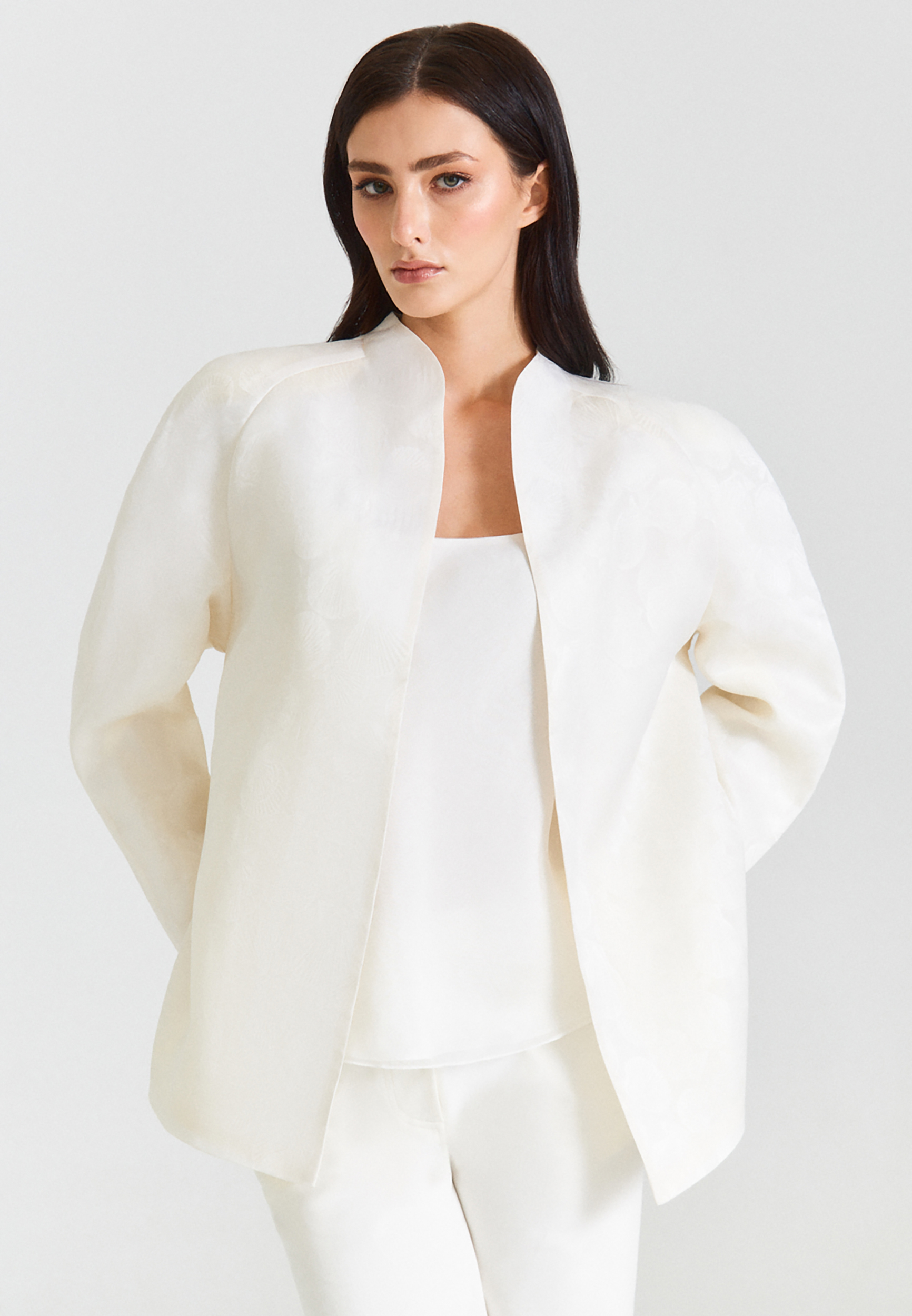 Куртка-жакет кремового цвета из жаккардового шелка.