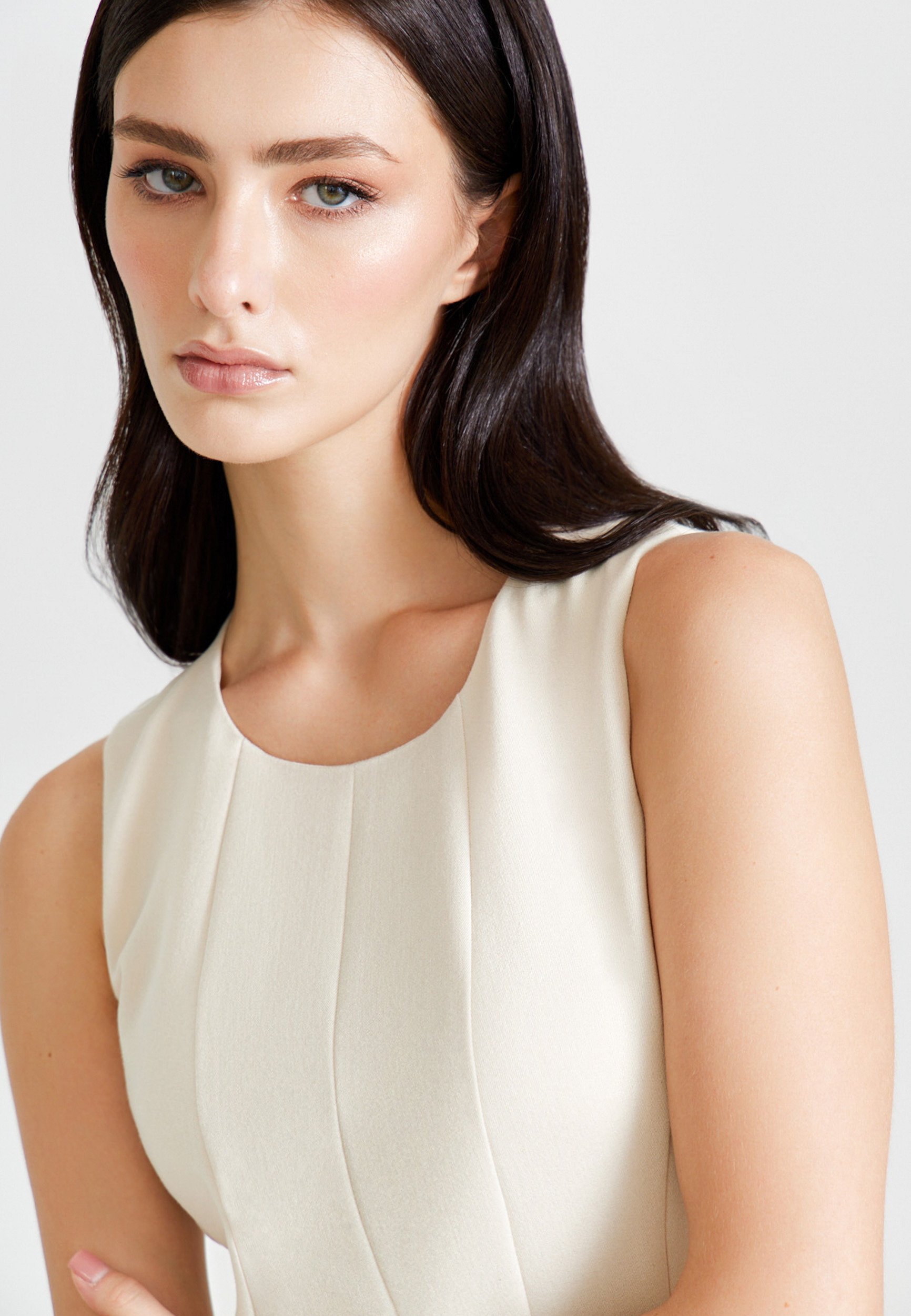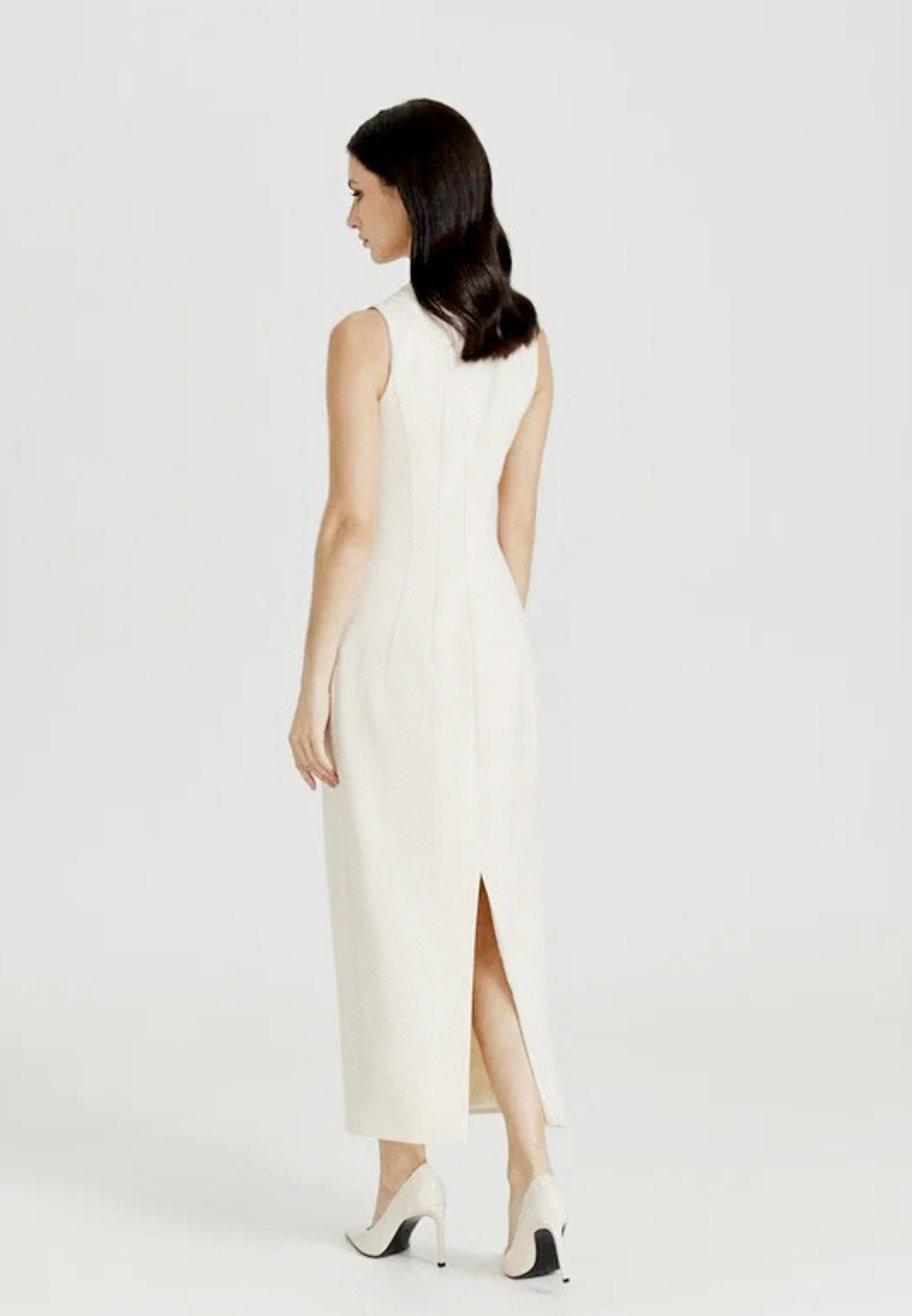Модель облегающего силуэта, плотно сидящая по фигуре, с круглым вырезом горловины, без рукавов, застежкой на молнию на спинке и разрезом сзади для комфортного шага. Отделочные строчки формируют утончённую линию силуэта и добавляют образу аккуратной графичности — именно той, что делает платье универсальным выбором для самых разных поводов. Сочетайте с пальто и жакетами бренда AMMONIT. Наши изделия создаются в Москве и Италии — местах, где традиции мастерства встречаются с современной эстетикой. Каждое изделие рождается в уважении к достоинству человека и в согласии с окружающим миром. Если вы хотите получить индивидуальную консультацию по выбору размера ил