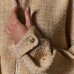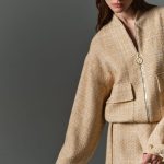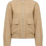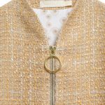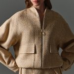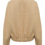 Объемный твидовый бомбер с накладными карманами и удлиненным рукавом. Бомбер имеет фурнитуру приглушенного золотистого оттенка и тонкий шелковый подклад.