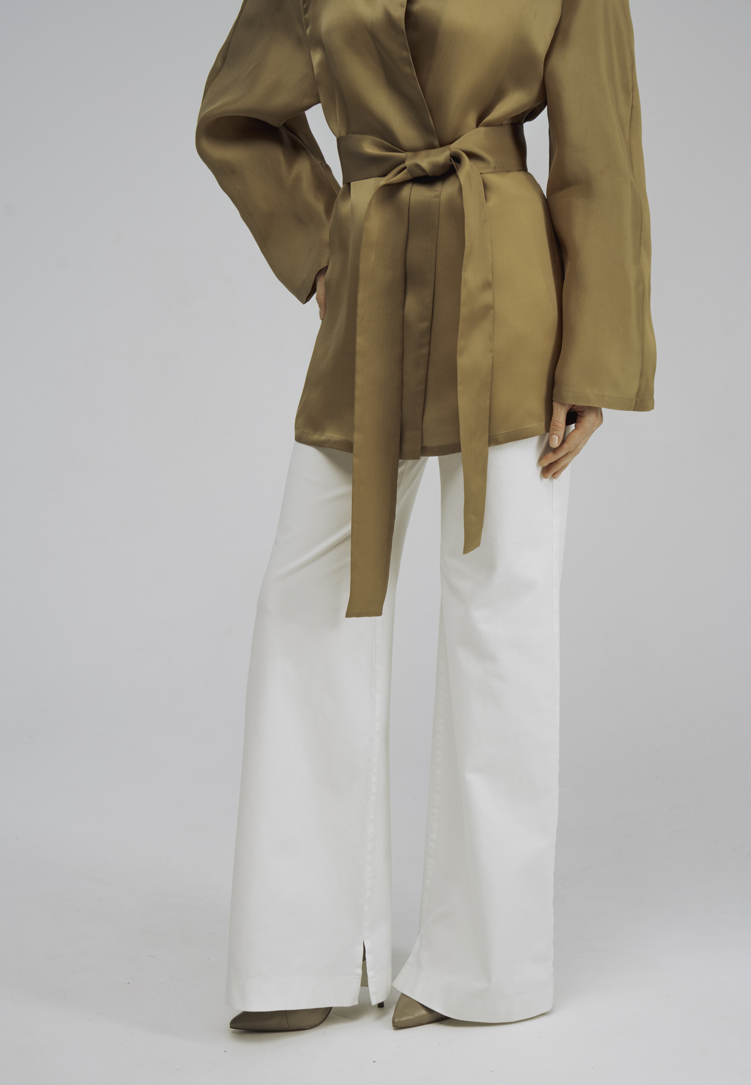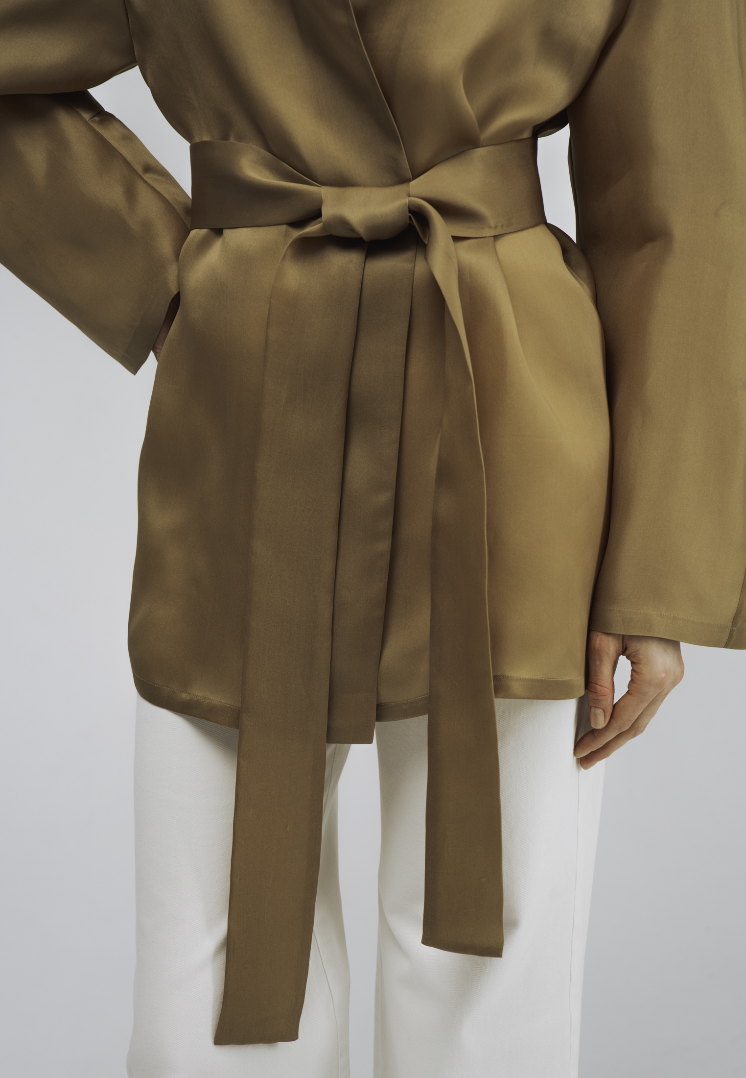 Главная Коллекция весна - лето 2026 Куртка — кимоно из шелка золотистого цвета