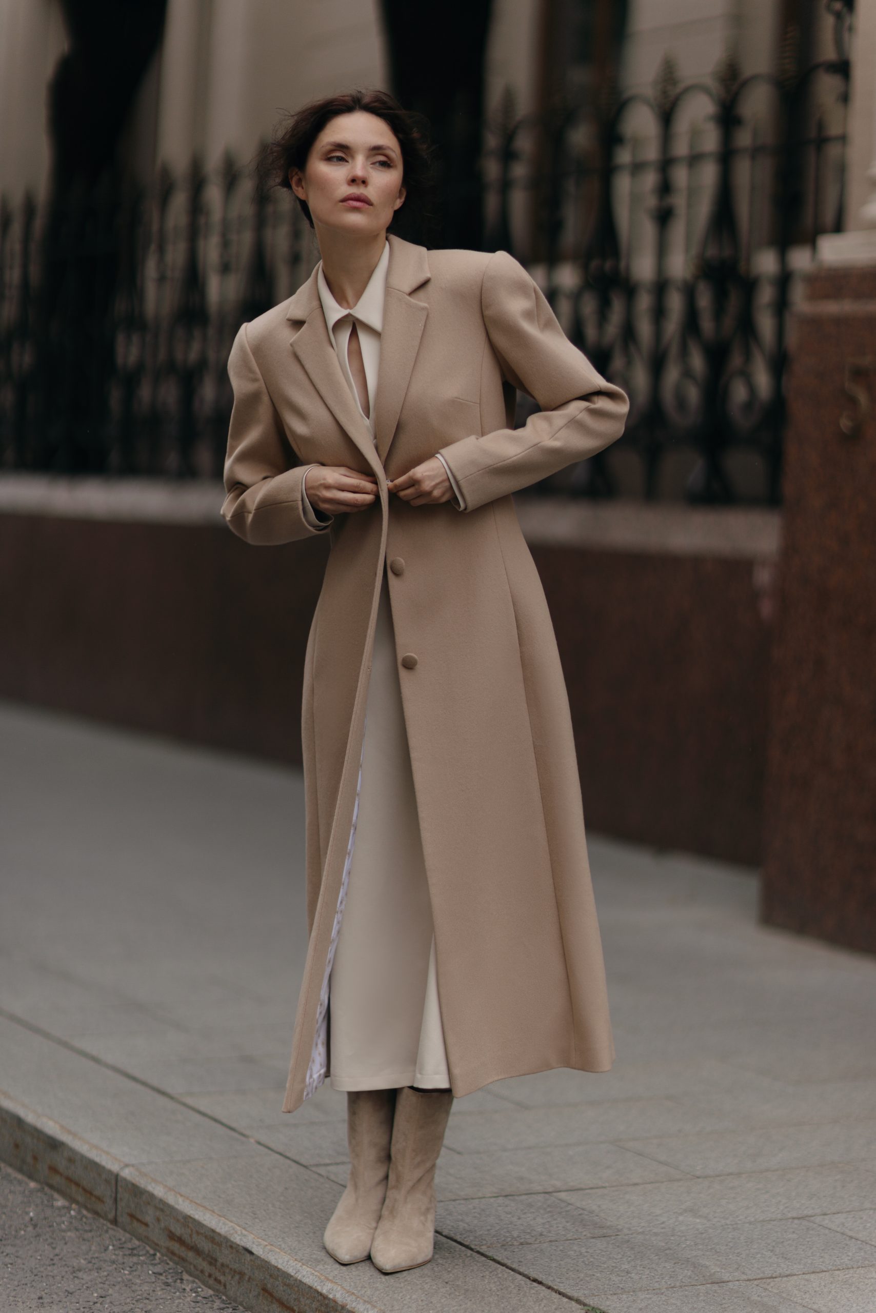 Пальто акцентирует внимание на талии, благодаря продуманному крою, который создает красивый силуэт.