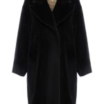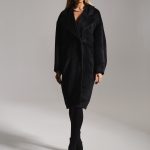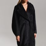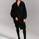 Пальто — кокон черного цвета из премиальной шерсти альпаки с добавлением кашемира. Спущенная линия плеча, широкий отложной воротник с лацканами, объемный рукав сужающийся к манжету, застежки — пуговицы, прорезные карманы. Необычная фактура ткани напоминает мех. Модный силуэт придаст элегантность вашему образу, при этом позволяя чувствовать себя свободно.