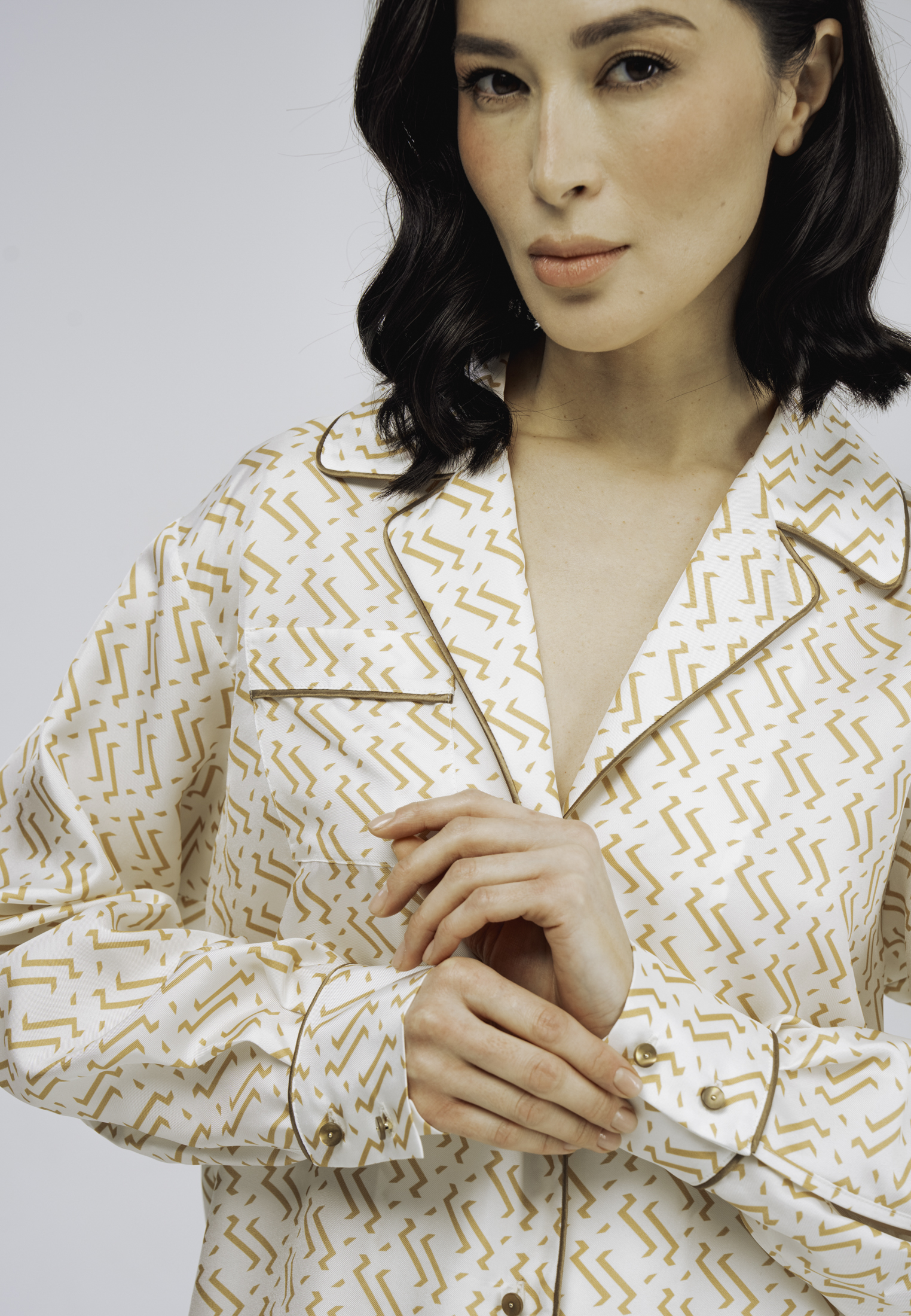 Главная Коллекция весна - лето 2026 Пижамная блуза из натурального шелка с принтом