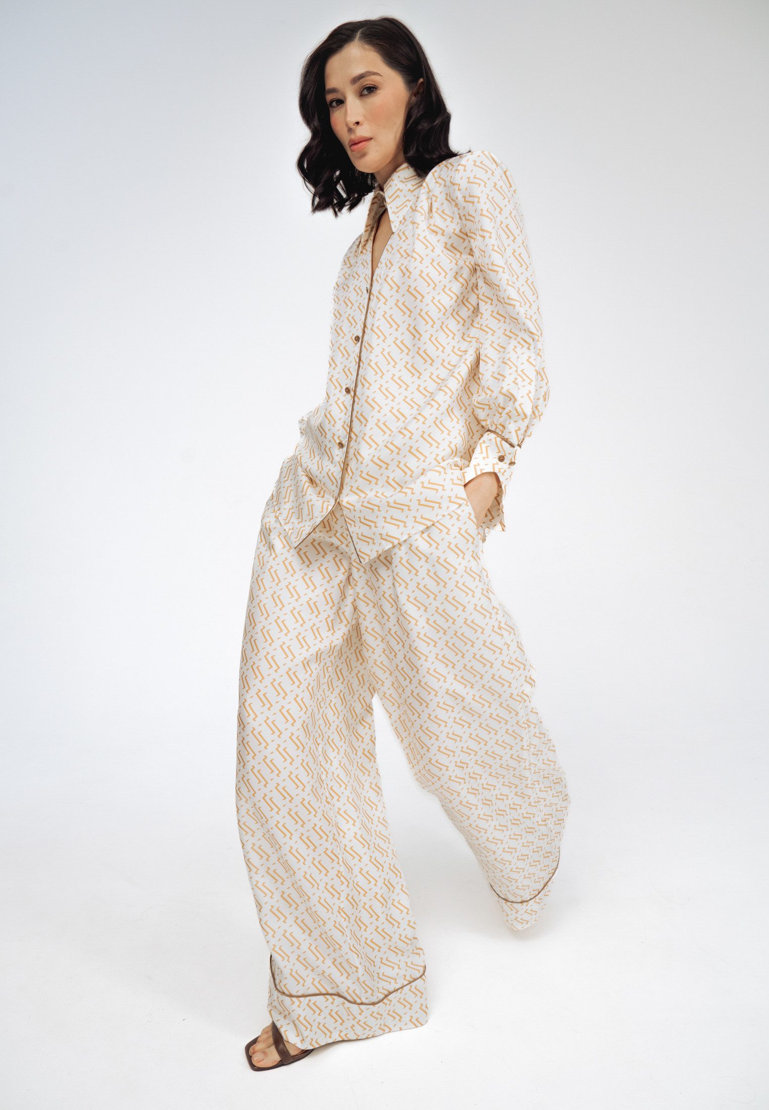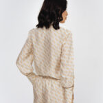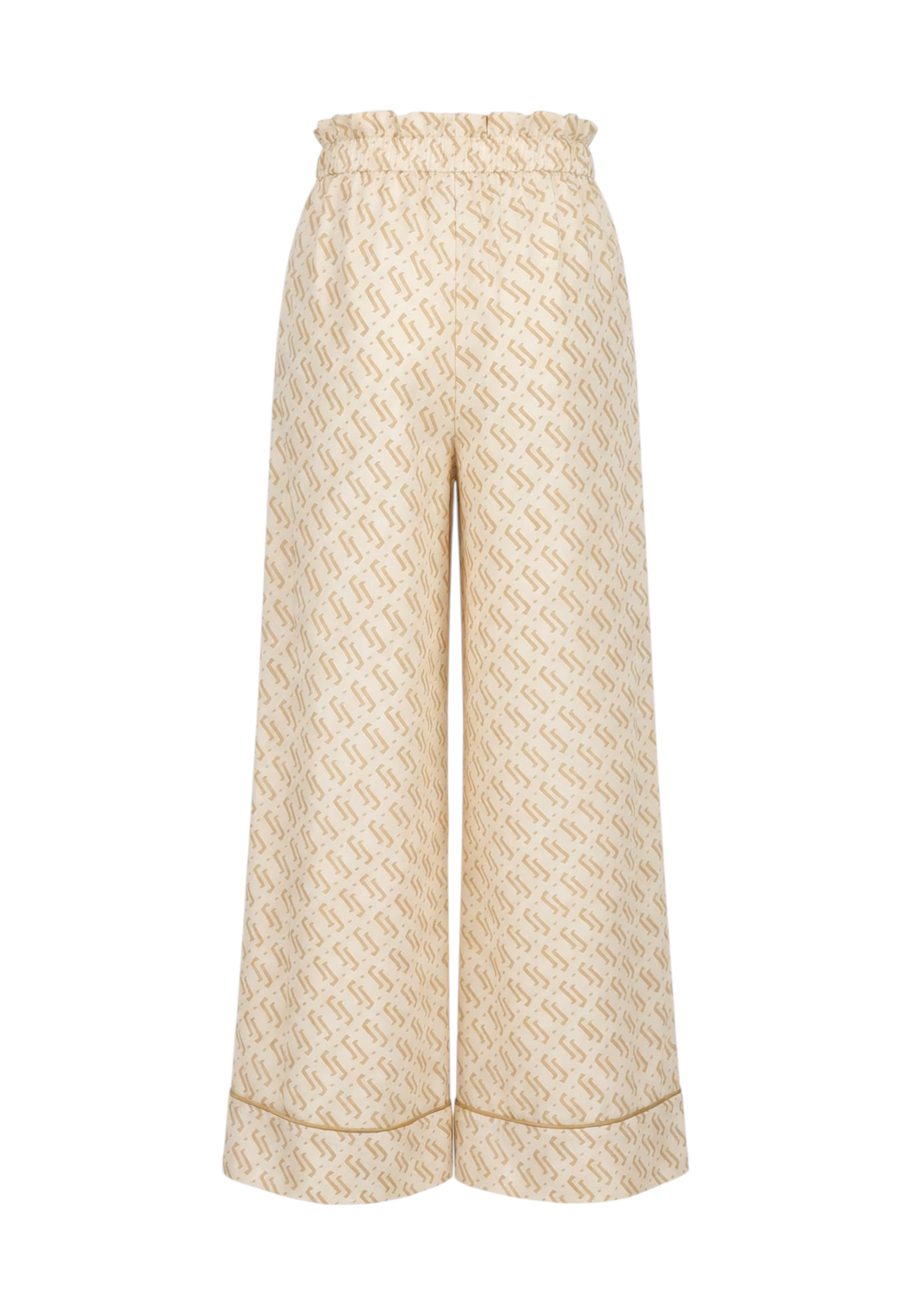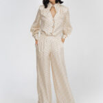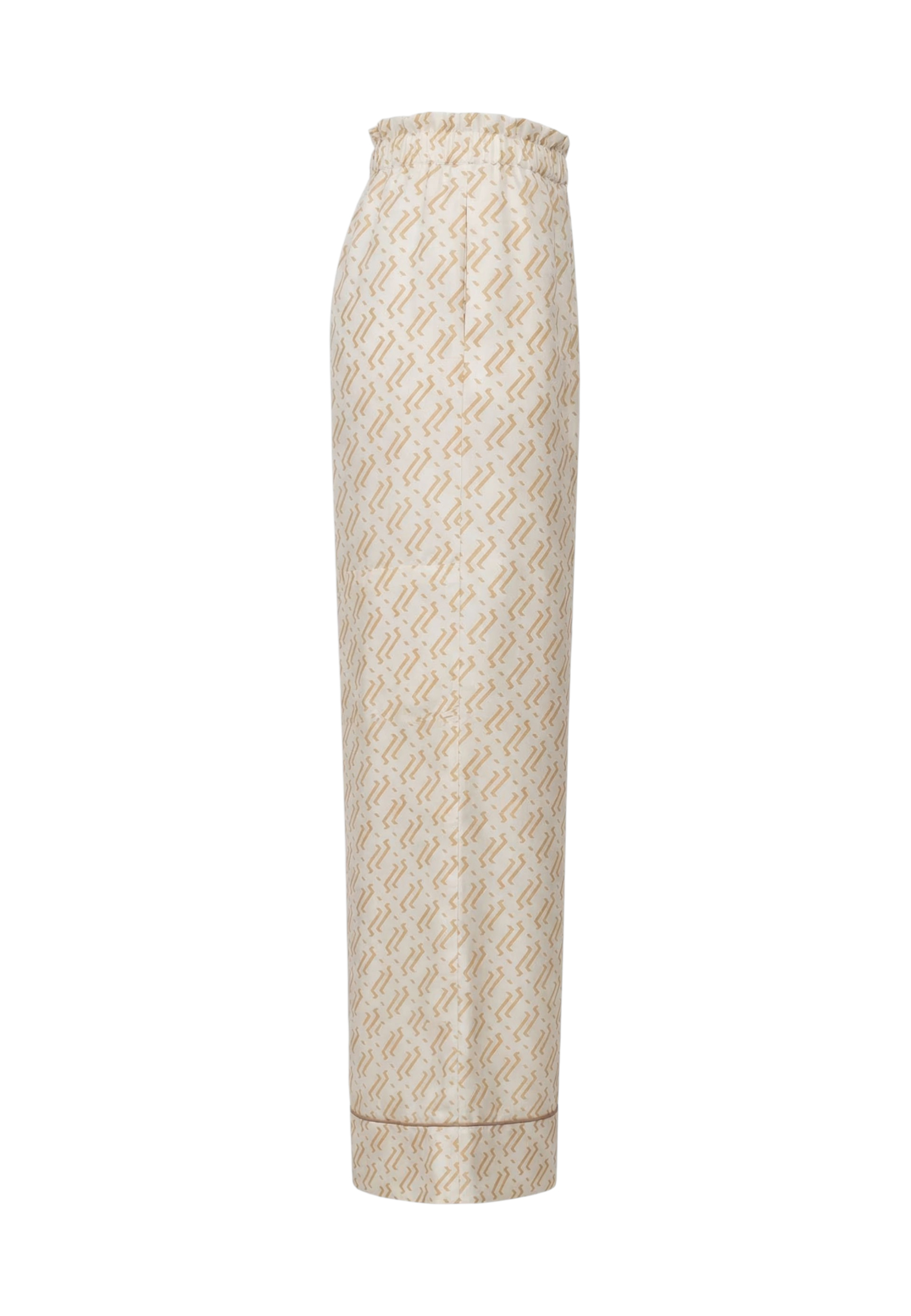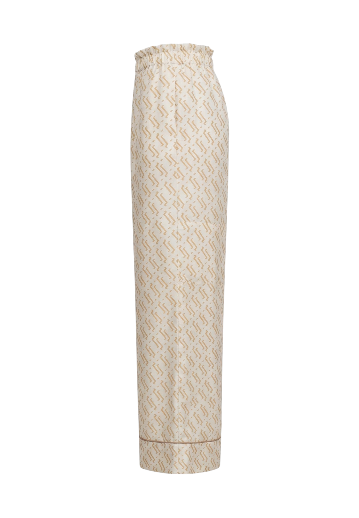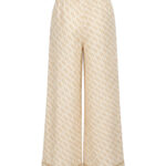Пижамные брюки из белого шелка с принтом в виде волн.