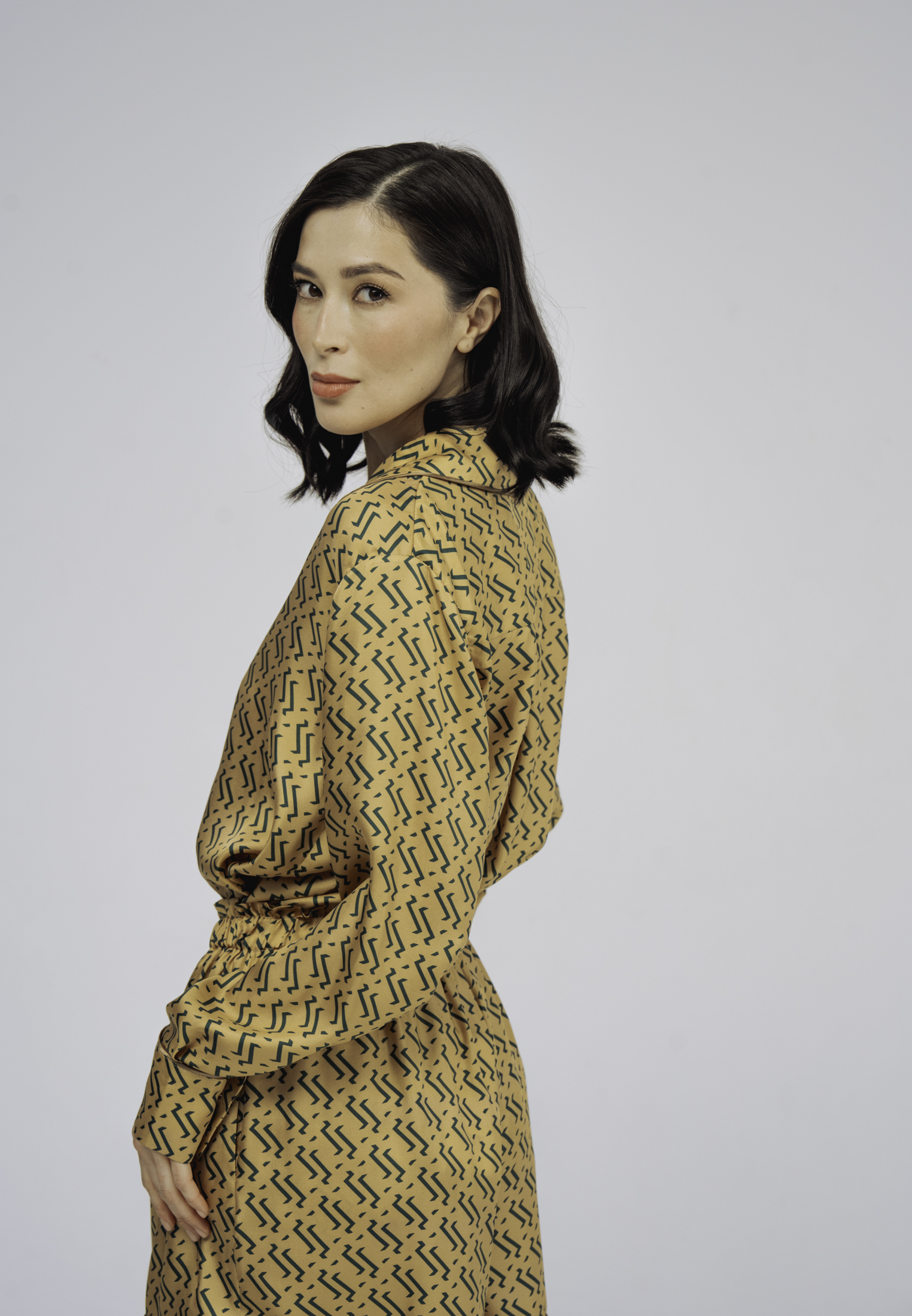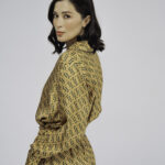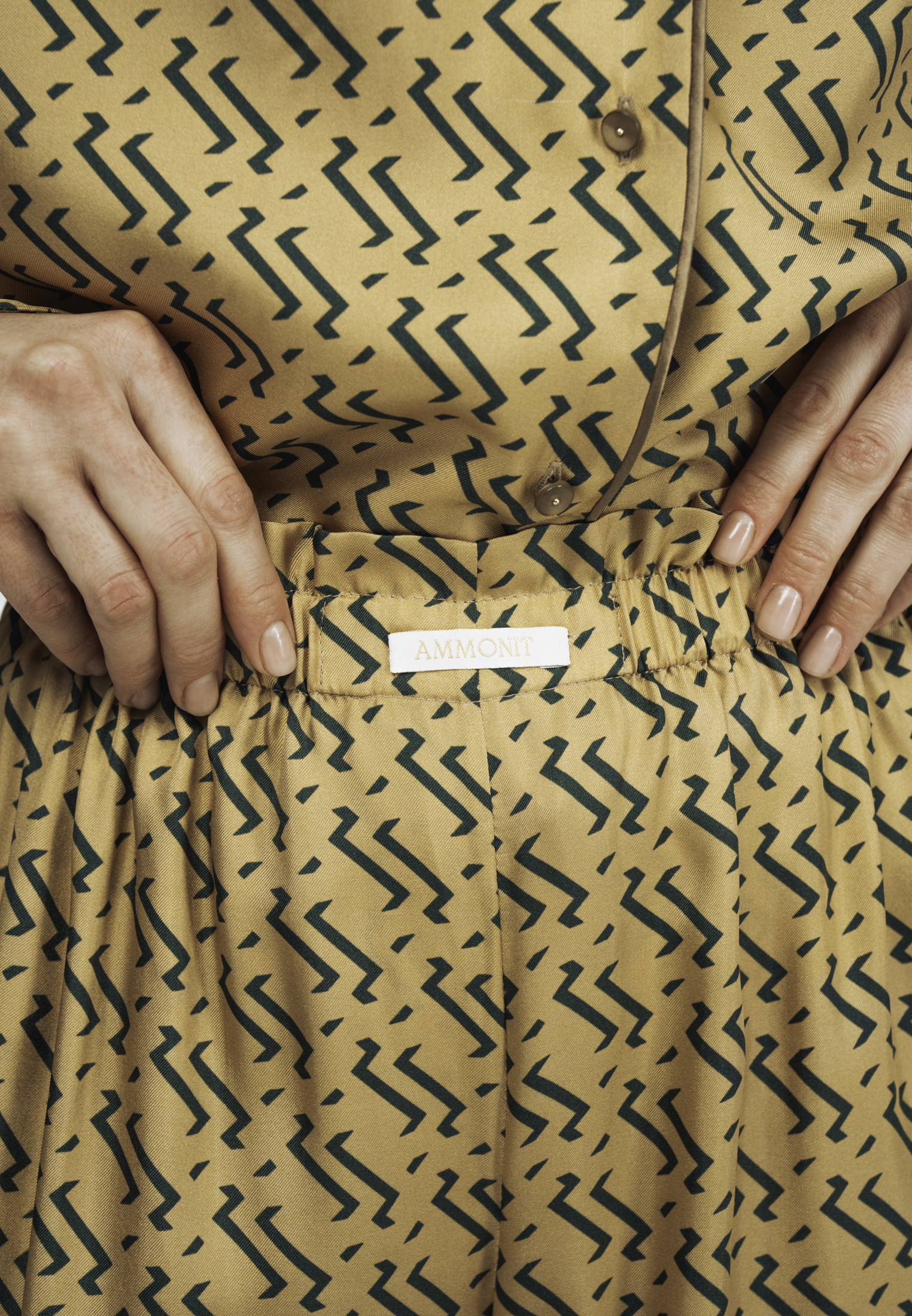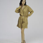 Пижамные шорты из шелка золотого цвета с принтом.
