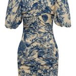 Платье из тонкого шёлка с цветочным принтом, созданное в технике декоративной сборки. Платье имеет объёмный рукав и волан по низу изделия.