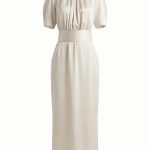 Платье миди кремового оттенка из смесовой атласной ткани.
