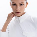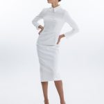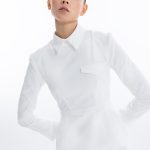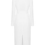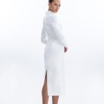 Платье-миди облегающего силуэта с акцентом кроя на талии и бедрах, длинными рукавами, и разрезом сзади для комфортного шага. Платье выполнено из микровельветва, что вместе с уникальным кроем и акцентным хлопковым воротном в классическом стиле придают элегантность и особый шик.