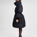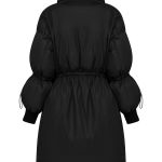Черный удлинённый пуховик с наполнителем из лебяжьего пуха. Модель прямого кроя с кулиской на талии, длинными рукавами с вязаными манжетами, прорезными карманами на молниях, воротником стойкой, акцентной застежкой-молнией с двумя пуллерами. Регулировка на талии и по нижнему краю позволяет изменять силуэт по вашему настроению. Наполнитель из гипоаллергенного лебяжего пуха согреет вас в любые морозы, при этом придавая изделию чрезвычайную легкость.
