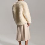Укороченная шуба из смеси шерсти и шелка. Модель свободного кроя без застежки, спущенная линия плеча, воротник — стойка, прорезные карманы. Волокна из натуральной шерсти с примесью шелка придают изделию особый шик и невесомость. Оверсайзный силуэт и необычный сливочный цвет помогут вам создать модный трендовый образ.
