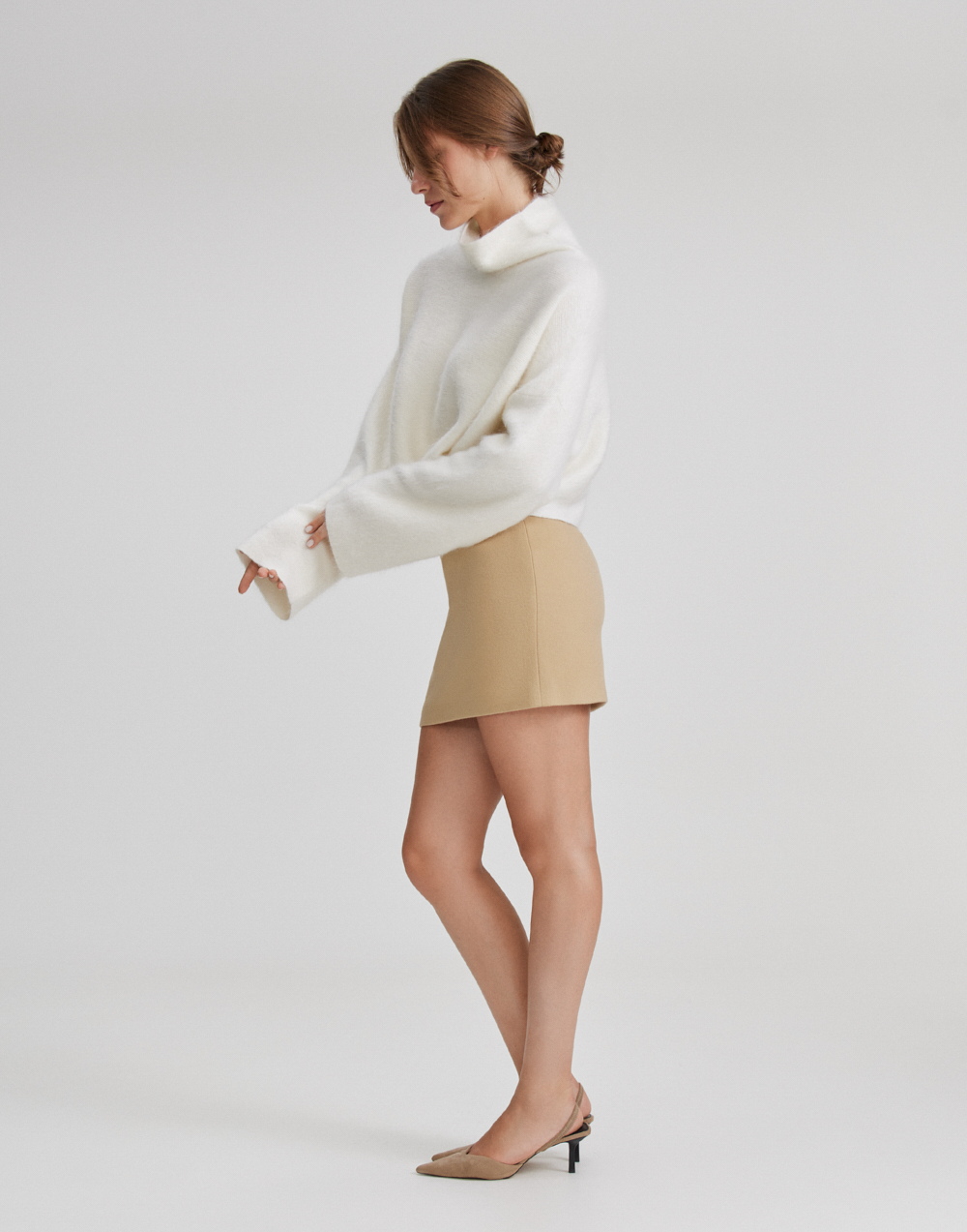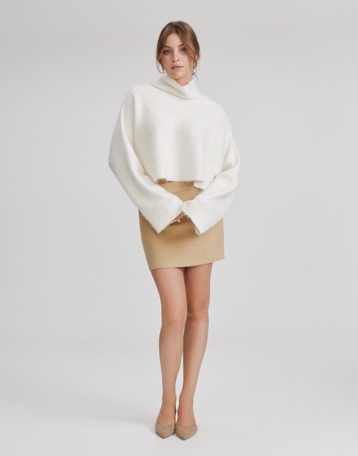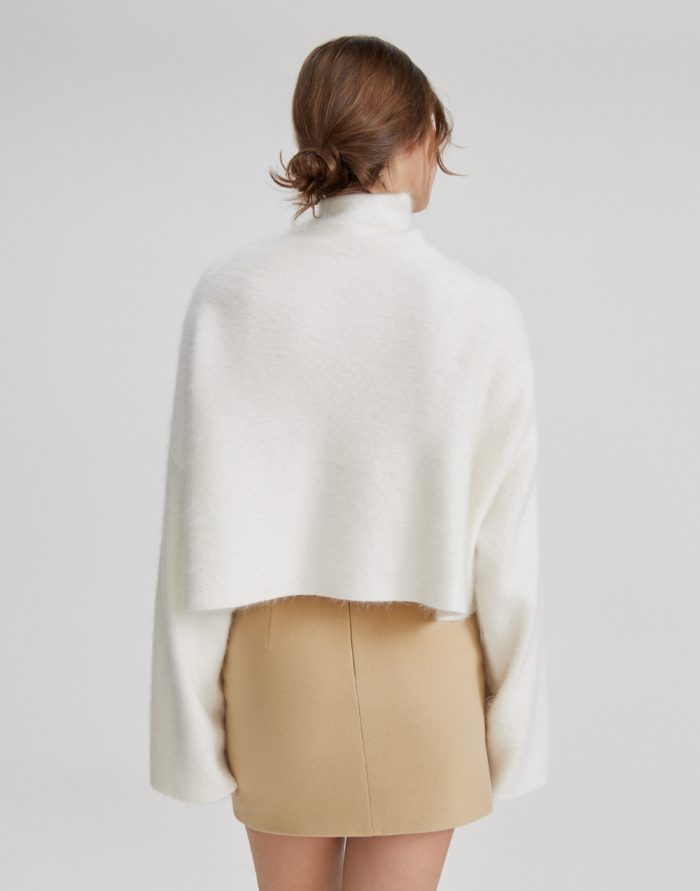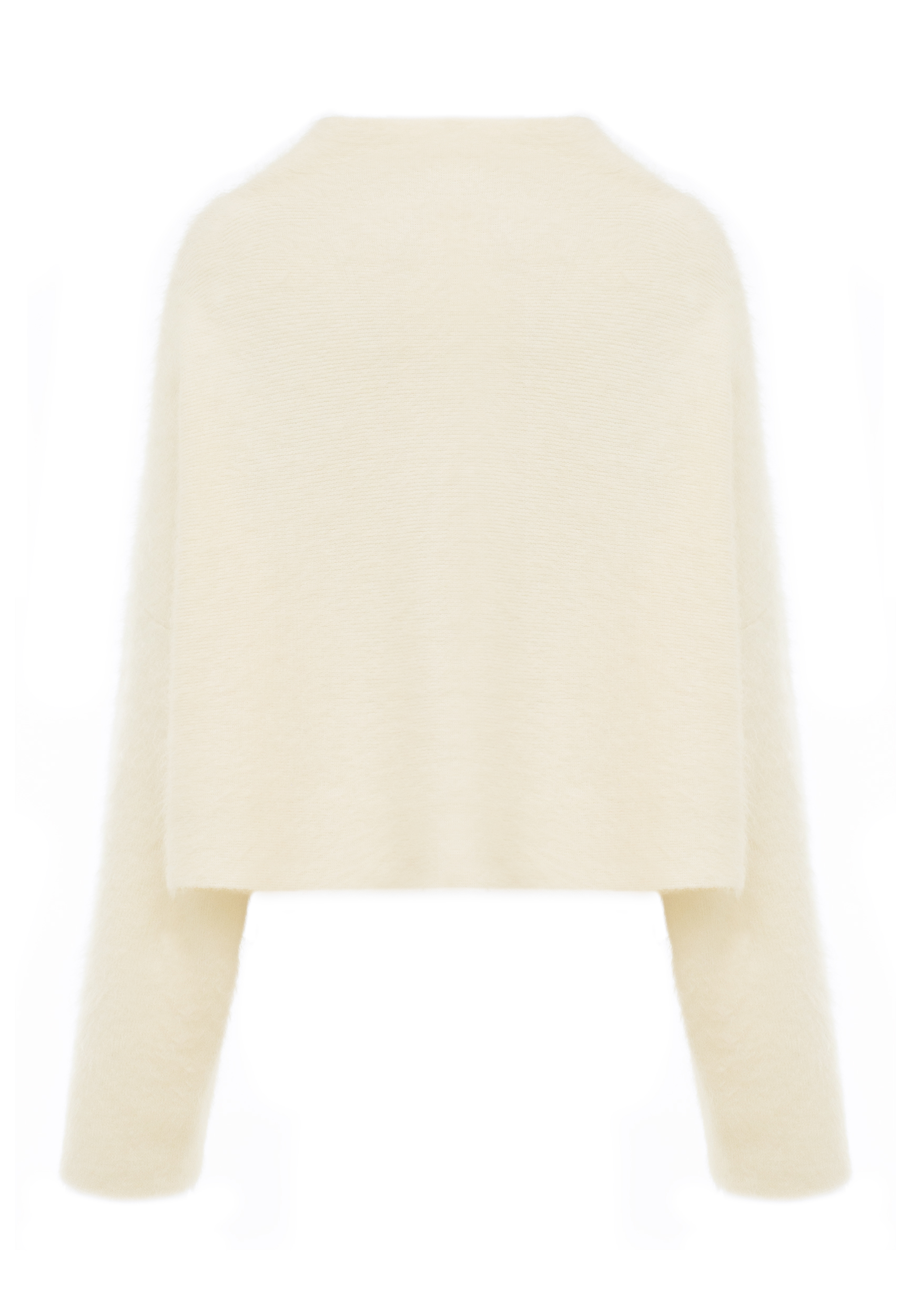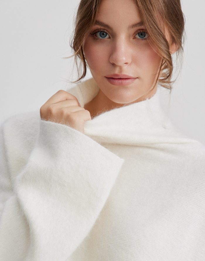 Белый свитшот из альпаки. Свободный силуэт, спущенная линия плеча, длинные широкие рукава и высокий ворот с отворотом. Свитшот воплощает утонченность современного стиля и высокое качество исполнения. Необычный крой и премиальные материалы создают ощущение комфорта и статуса каждый день. Элегантное изделие станет выразительной деталью любого гардероба, подчеркивая индивидуальность и хороший вкус. Наши изделия создаются в Москве и Италии — местах, где традиции мастерства встречаются с современной эстетикой. Каждое изделие рождается в уважении к достоинству человека и в согласии с окружающим миром.