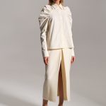 Юбка-миди в молочном цвете из фактурной итальянской шерсти.