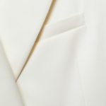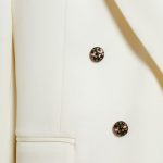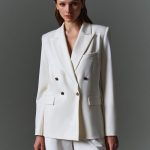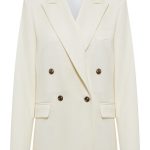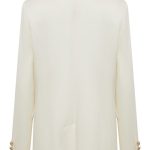 Двубортный жакет из шерсти прямого силуэта. Жакет имеет металлическую фурнитуру с камнями и тонкий шёлковый подклад.