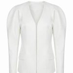 Белый жакет из атласной ткани с эффектом блеска.