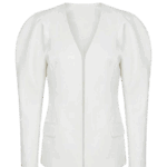 Белый жакет из атласной ткани с эффектом блеска.