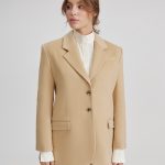Удлиненный жакет в бежевом цвете из мягкой итальянской шерсти с добавлением кашемира.