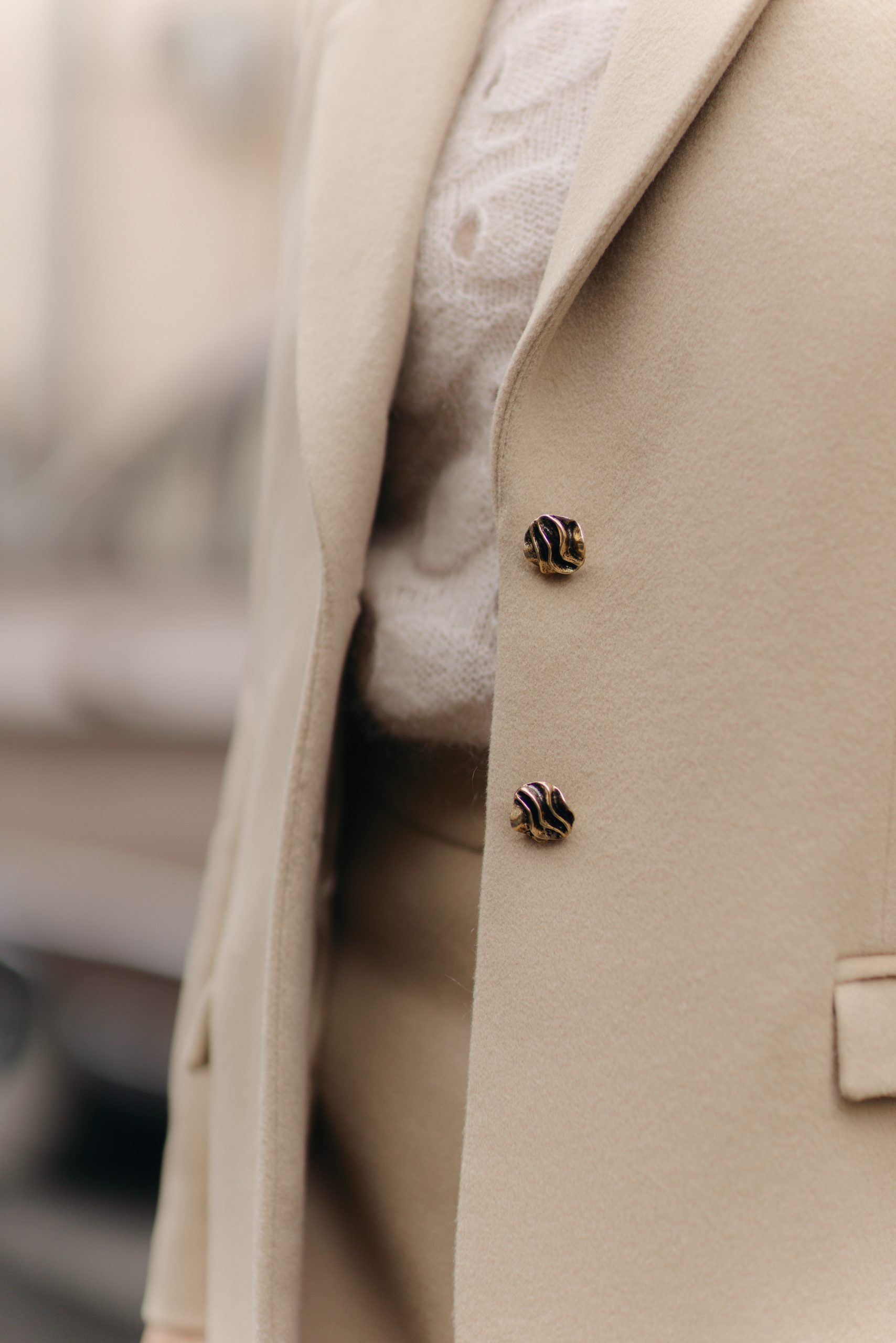 Добавление роскошного кашемира к прочной шерсти создаёт материал, сочетающий устойчивость формы с утончённой мягкостью. Для сохранения качества материала рекомендуется профессиональная химическая чистка.