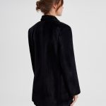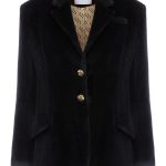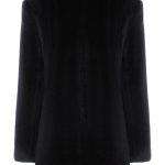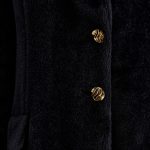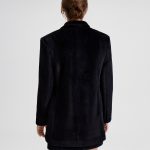 Удлиненный жакет черного цвета из премиальной шерсти альпаки с добавлением кашемира. Однобортная модель прямого кроя с длинными рукавами, отложным воротником с лацканами, фальш-карманами с клапанами, шлицей, застежкой на пуговицы. Необычная фактура ткани напоминает мех. Жакет станет стильным и современным элементом вашего гардероба, который идеально подходит для создания элегантного образа.