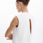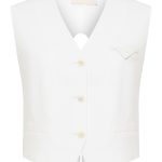 Жилет из микровельвета на пуговицах, с акцентным кармашком на груди и вырезом на спине. Свободный крой. Предлагается носить с брюками и юбками из этого же материала, которые представлены в коллекции.
